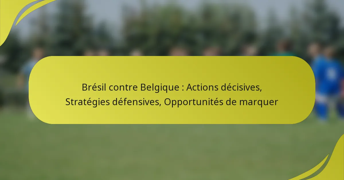 Les actions décisives dans les matchs Brésil vs Belgique incluent souvent des buts clés, des arrêts décisifs et des décisions controversées de l’arbitre qui influencent significativement l’issue du match. Ces moments peuvent changer l’élan, modifier les stratégies et mettre en lumière les performances remarquables des joueurs.