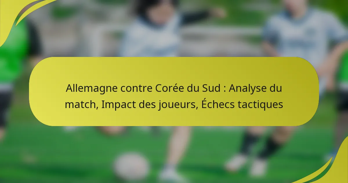 Le match entre l’Allemagne et la Corée du Sud a mis en évidence un affrontement compétitif, l’Allemagne dominant légèrement la possession et les tirs. Les performances individuelles des joueurs ont été cruciales, car des contributions remarquables et des erreurs critiques ont façonné la dynamique du jeu. Les deux équipes ont employé des stratégies tactiques distinctes, l’Allemagne privilégiant une formation en 4-3-3 pour le contrôle du milieu de terrain, tandis que la Corée du Sud a opté pour un schéma en 3-4-3 axé sur le pressing et les contre-attaques, influençant finalement l’issue du match.